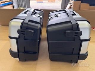 Tenute bene e utilizzate poco , chiave in comune , per attacco Givi e Kappa con sistema Monokey , ideali da utilizzare come laterali specie per moto che hanno marmitta laterale alta , precedentemente montate su KTM Adventure