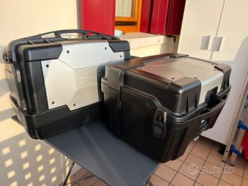 Vendo coppia valigie modello Garda Kappa 46L attacco monokey. Composizione base in tecnopolimero Fiberglass reiforced nero e cover esterna in alluminio. Valigie acquistate luglio 2024 e quasi mai utilizzate, le vendo perché ho cambiato attacco.