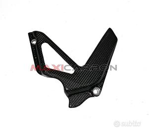 La finitura del carbonio è lucida (disponibile su richiesta anche con finitura opaca), e la trama utilizzata è la stessa di Ducati.