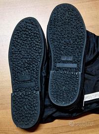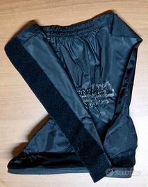 Copriscarpe antipioggia per moto misura L 26-28,5, marca Overside, Materiale pvc, totalmente Impermeabili con suola rigida antiscivolo, apertura posteriore intera con velcro e striscia reflex sul retro. Usati solo un paio di volte.