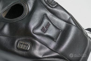 Vendo per inutilizzo (moto venduta), copriserbatoio + borsa da serbatoio estensibile in pelle, per Ducati monster 600/750/900 marca TOP SELLERIE. Usata pochissimo, praticamente come nuova. L'avevo montata su un Monster 600 del 2001. Dovrebbe andare bene anche su modelli anni successivi, sempre con la stessa forma del serbatoio. La borsa ha una copertura in plastica trasparente aggiuntiva, da utilizzare in caso di pioggia. Cinghia per trasporto quando si smonta. Spedisco ma preferirei ritiro a mano.