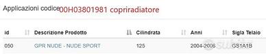 Codice ricambio: 00H03809181 CORNICE COPRIRADIATORE ORIGINALE 00H03809181 DERBI GPR 50 devi tabella montaggio nuovo aperto solo per foto