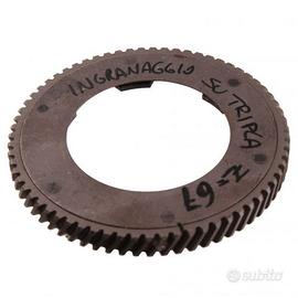 (R.21677) Vendo ingranaggio elastico usato con ribattini vecchi da togliere del pedale avviamento da 67 denti per Piaggio Vespa Super 125 e 150 cc - G.T 125 cc - Sprint 150 cc - Rally 180 cc simile a codice Piaggio077351 , per applicazioni e spaccato vedere foto