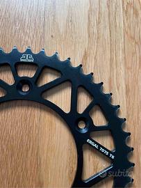 Corona Giapponese JT in Ergal 7075 T6, usata pochissimo come da foto (c’è ancora l’anodizzazione sui denti). Compatibile con Honda CRF enduro / cross qualsiasi annata e cilindrata