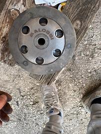 Guppo correttore di coppia, frizione e campana malossi. con molla di contrasto rossa e mollette rosse.
