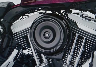 Cover Filtro aria tondo "Bobber Style", colore nero lucido, per Harley-Davidson (cod.61300128). Compatibile con modelli XL1200V ‘12-'16, FLS e FXS '11-'15 con filtro dell'aria rotondo di serie. Anche per modelli dotati dei kit filtri dell'aria Screamin' Eagle rotondi ad alto flusso. Nuovo nella confezione originale. Prezzo di listino €77.