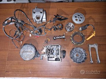 Whatsapp 3201380463 Vendo tutti i ricambi per honda cr crf 125 250 2004 2005 2006 2007 2008 2009 04 05 06 07 08 09: ciclistica completa tranne motore e carburatore telaio con e senza ammortizzatore di sterzo forcella avantreno con piastre showa 47 ad olio ( beta ktm yamaha xr transalp dominator ) forcellone con link leveraggio telaietto sia versione mono scarico, doppio scarico e versione x con vano batteria telaietto crf 450 impianto elettrico radiatori coppia cerchi grigi doppio scarico originale paramotore dischi originali mono ammortizzatore showa sella completa alette radiatori scatola cassa filtro serbatoio impianto frenante anteriore e posteriore ( tubo pompa pinza leva pastiglie pedale ) kit plastiche grafiche parasteli convagliatori copri pinza copri disco anteriore paramani collettore scarico catena corona pignone staffe telaio motore kit partenza manubrio 22 e 28 con riser leva marce pedane originali e magiorate ergal tubi manicotti radiatori manettino comandi frizione contaore tasto spegnimento moto Casse banco carter motore testata cilindro cambio carburatore desmo frizione campana frizione volano e statore generatore bobina centralina impianto elettrico frizione albero motore biella mozzetto frizione ingranaggi cambio controalbero assi ruote boccole bulloneria varia carter volano carter frizione coperchio testata leva pedalina messa in moto carter pompa acqua albero a camme comandi gas acceleratore cavi aria a caldo tutti i perni dadi rondelle ingranaggi motore bilanciere pompa olio testata crf 250 2010 2011 2012 2013 Whatsapp 3201380463