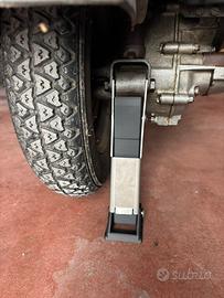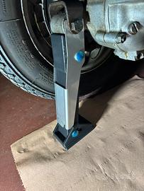 Cric alzaruota per Vespa PX P200E PE LML COSA TS RALLY SPRINT VELOCE LARGEFRAME Ideale per manutenzione o per sostituire una ruota forata. Si alza la ruota in meno di 10 secondi, si ripone nel bauletto e pesa pochissimo.
