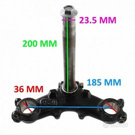 (R.13076) Vendo trapezio piastra forcella inferiore usata sana con canotto per Yamaha XT 500 cc prima serie dal 1976 fino al 1977 con telaio 1N5 originale epoca con codice Yamaha della piastra 583233450033 e codice Yamaha del piantone 1E6233410000 di colore nero con fori per steli di diametro 36 mm, per misure e applicazioni vedere foto