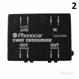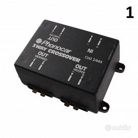 (R.16302) Vendo crossover a tre vie nuovo per ciclomotori vari marchiato Phonocar 3WAY CROSSOVER OUT MIDRANGE OUT WOOFER OUT TWEETER IN Cod. 2/444 in plastica nera con scritte bianche , disponibili più modelli :