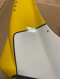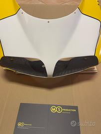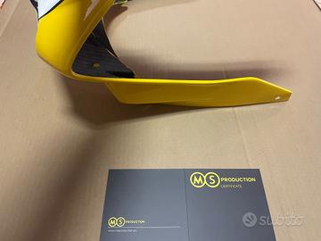 Nuovo mai montato. Desmopassioni e' distributore ufficiale MS PRODUCTION. Ad ogni singolo prodotto viene rilasciato certificato di autenticita' completo di certilogo all'interno. Versione stradale con prese aria standard verniciato colore giallo colore originale ducati e tabella porta numero e relativo filetto carbonio a vista