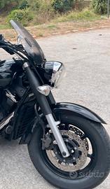 cupolino universale per moto naked, cruiser, custom, ecc. completo di attacchi a manubrio, marchio Mra, colore grigio fumo, ottima protezione dal vento