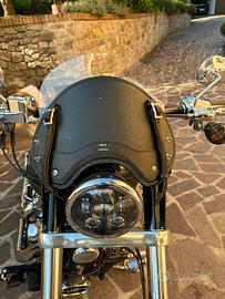 Cupolino in pelle MCJ con plexiglas estraibile, parabrezza, MONTA SU HARLEY DAVIDSON BREAKOUT 103. Bellissimo e molto funzionale, nessuna modifica, facile istallazione sulla forcella originale. Prezzo 250