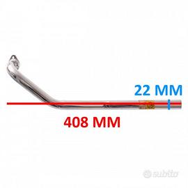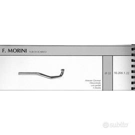 (R.21229) Vendo collettore di scarico nuovo in ferro cromato per Franco Morini Gyromat orizzontale con pedali marca CBA con codice 1951 o 10200122 con diametro tubo 22 mm e lunghezza totale 408 mm , per misure e scansione catalogo vedere foto