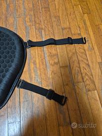 Cuscino per sella moto. È pieghevole e a nido d'ape, altamente traspirante ed elasticizzato (per assorbire vibrazioni e urti). Adattabile alla maggior parte delle motociclette. È adatto per viaggi a lunga distanza. Mai utilizzato e ancora con scatola originale. Larghezza massima: 36,5 cm Larghezza punto più stretto: 17 cm Lunghezza: 40 cm Spessore: 3 cm