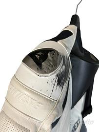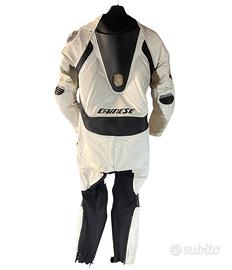Vendo tuta intera da moto professionale Dainese Lauguna Seca Pro Bianca estiva taglia tg.52 Usata poco, credo 4 / 5 volte , purtroppo ho fatto una caduta con la minimoto pitbike in pista e si è segnata sulla spalla destra, non è bucata e non ha abrasioni profonde, si dovrebbe pulire, ripristinare e sostituire lo slider in titanio per farla torna in ottime condizioni alternativa a una tuta divisibile da motociclista Alpinestars o mtech spyke