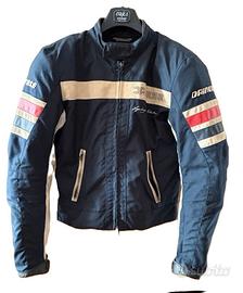 Dainese Legendary Protection è una giacca molto rara e ricercata, in morbido tessuto cordura molto resistente ma traspirante, con dettagli colorati in vera pelle e protezioni certificate su gomiti e spalle. Ideale per tutte le stagioni, sia quelle calde che invernali, avendo imbottitura rimovibile. "Legendary Protection" di Dainese è una linea vintage in perfetto stile café racer che fonde materiali tecnici moderni con un design ispirato ai modelli sportivi storici degli anni '70. In ottime condizioni, senza usure particolari, appena lavata, taglia S/44 uomo, io sono alto 1,71x67kg (vedi foto) ma posso inviare misure dettagliate in caso di dubbi.