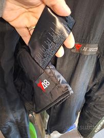 vendo giubotto dainese in tessuto con protezione spalla e gomiti, interno sfoderabile, usato poco unico difetto leggermente scolorito su i polsini, resto ok, vendo perché troppo piccolo taglia 48