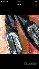Vendo Dainese modello Sport giubbotto tg 52 in fior di pelle sfoderabile completo di protezionl abbinabile tramite cerniera a pantaloni Dainese diventa una tuta no tagli e graffi in ottime condizoni. Insieme regalo tuta antipioggia della Spyke tg 52 M usata due volte ! Nuova ideali anche in citta’ in scooter No alpinestar harley davidson