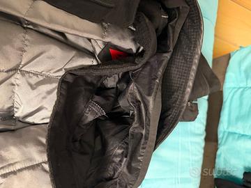 Tuta Dainese per motociclismo Taglia 52 con doppia imbottitura rimovibile per uso sia in estate che in inverno con rinforzi rigidi a spalle, schiena, gomiti e ginocchia. Pantaloni accoppiabili alla giacca tramite zip.