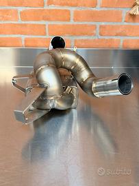 COLLETTORE RACING QD EXHAUST DUCATI MULTISTRADA V4 / S / PIKES PEAK RALLY GRAND TOUR MY 2025 - 2026 Prodotto racing non omologato per l’utilizzo su strada. CODICE ARTICOLO : ADUC0700005 Prezzo di listino 1445€ Realizzato in acciaio , specifico per Ducati multistrada V4 V4S V4 PIKES PEAK RS MY 2025 - 2026 Questo collettore è compatibile con silenziatore originale e aftermarket Akrapovic Termignoni MIvv QD Exhaust CON L’INSTALLAZIONE DEL COLLETTORE RACING SI AVRA’ UN INCREMENTO PRESTAZIONALE, DIMINUZIONA DI PESO, RIDUZIONE DEL CALORE Per la Ducati Multistrada V4 RS nuovo modello versione 2026 il nostro reparto R&D ha voluto spingersi oltre ed ha progettato un decatalizzatore RACING che migliora prestazioni e sound, portando la moto a mostrare il suo reale potenziale. I risultati sono stati impressionanti +16cv di potenza massima e una riduzione di peso di 5.4kg rispetto al catalizzatore di serie. Le tubazioni come il pre-silenziatore sono realizzati in acciaio INOX AISI 304 saldati TIG. La tubazione della prima parte dell’impianto che porta al pre silenziatore ha un diametro di 52mm mentre il tubo di raccordo che collega l’impianto decatalizzatore al silenziatore ha un diametro di 60mm. Il decatalizzatore è modulare ed è quindi possibile montarlo sia con un silenziatore QD che con il silenziatore originale. Garanzia 30 mesi attivando la Service Card.