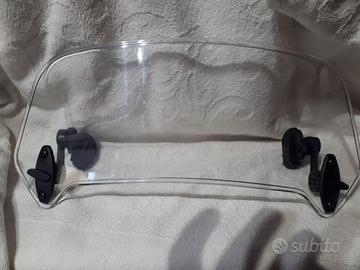 Deflettore snodabile per parabrezza colore trasparente. Tenuto molto bene, non presenta graffi. Si monta nella parte alta del parabrezza e si puo' regolare orientandolo in avanti e indietro. permette di eliminare il noioso effetto wind-buffetting di sballottamento sul casco. Vendo per inutilizzo