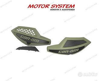 I deflettori antivento per manubrio Can Am hanno una struttura in plastica molto robusta, stampata ad iniezione, ed il logo Can Am in rilievo. Includono una mascherina di copertura removibile per regolare il flusso dell’aria. Il kit di montaggio in alluminio, disponibile nella versione integrale, viene venduto separatamente. Può essere installato sia su Outlander che su Renegade.