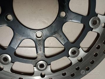 Vendo per upgrade coppia dischi più pastiglie Brembo Spessore 4.5 Ottimo stato , praticamente a metà vita Per compatibilità ricerca tramite scheda tecnica Diametro esterno: 305 mm Diametro interno: 72 mm Spessore: 4.5 mm Numero fori: 5 Circonferenza fori: 90 mm Diametro fori: 8.50 mm Campanatura: 10 mm