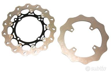 Realizzazione dischi freno anteriore o posteriore in acciaio aisi di qualità 100%made in italy anche personalizzati o a campione per moto epoca classiche special da collezione stradali motard o fuoristrada sia fissi che flottanti profilo pista frenante tondo o a margherita tipo wave Prezzo su richiesta tempistiche da 10 a 30 giorni ( alcuni esempi supermoto o pista 320mm diametro mozzo in ergal anodizzato in vari colori e nottolini sostiubili colorati )