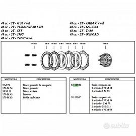 (R.2004) Vendo serie dischi frizione nuovi per Franco Morini Turbo Star - 5ST - 3MG - T4 - V6 - VC4 - 4MR - GS - GSA - TA50 - Oxford 48 cc , il prezzo si intende per singolo pezzo , per misure con applicazioni ed esploso vedere foto , disponibili più modelli :