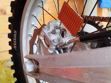 Vendo dissipatore termico per freno posteriore compatibile con la pinza originale del KTM freeride (in foto su modello 250 R anno 2016). Dissipatore realizzato internamente in alluminio con alette di raffreddamento collegate alla piastrina tramite colla termica EC360 extra forte. Possibilità di realizzazione con due piastrine alettate una sopra all'altra(come in foto) o una affianco all'altra oppure con una sola piastrina alettata (costo articolo diminuito di 5 euro).
