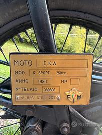 Dkw 250 k sport del 1930 , il n regola con documenti , buono stato più che funzionale