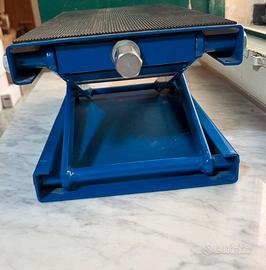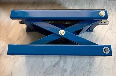 Dimensioni della piattaforma: 380 x 230 mm. Altezza minima o massima di sollevamento: 84 mm - 356 mm. Il tappetino in gomma sulla parte superiore della piattaforma previene danni alla moto. Supporto a forbice adatto per l'uso sul pavimento o su un sollevatore per moto. Il tappetino in gomma sulla piattaforma previene danni alla parte inferiore della macchina. Dotato di rulli con cuscinetti a sfera per sollevamento e abbassamento fluidi. NO SCAMBIO
