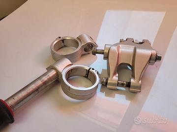 Vendo collari per semimanubri SX e DX più semimanubrio SX con manopola domino più leveraggio monoammortizzatore posteriore, il tutto completo di viteria tranne che per il serraggio del semimanubrio DX ( N°2 viti M6 ) VENDO SOLO IN BLOCCO Tutto USATO proveniente da Ducati 848 2008. Presentano piccole imperfezioni e segni di normale usura ma perfettamente funzionanti e integri. Per foto o chiarimenti rimango a disposizione. Una volta consegnato il pacco alla ditta di spedizione non rispondo in alcun modo per problemi o ritardi. Vendita tra privati, materiale usato e privo di qualsiasi garanzia.
