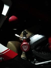 Per Ducati Serie Tamburini: 748, 916 ,996 ,998. Leve nere, nuove: 160. Brunita: 120, grigia: 80. Coprifrizione leggerissimo, non originale, usato: 60. Cover frizione a secco originale sia chiusa che aperta: 80. Tappo serbatoio nuovo con chiavi : 80. Pompa frizione serie Oro,completa come in foto: 150. Ammortizzatore di sterzo regolabile, perfetto : 130. Attuatore frizione "CNC" : 130.