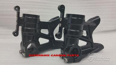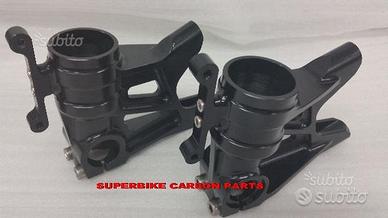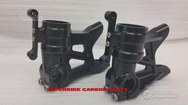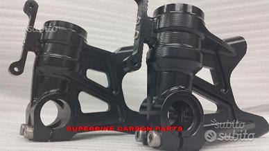 Realizziamo piedini radiali RICAVATI DAL PIENO per forcelle SHOWA 43 mm assiali e radiali di primo ecquipaggiamento Ducati. Diasponibili anche per forcelle Ohlins di primo ecquipaggiamento Ducati. Piedini ricavati dal pieno e disponibili con interasse 100 mm oppure 108 mm. Possiamo effettuare particolari lavorazioni meccaniche su richiesta del cliente, al fine di personalizzare al massimo tale realizzazione. Disponibile qualsiasi colore di anodizzazione. Si montano plug & play e non richiedono alcuna modifica, salvo l'uso di pinze radiali ovviamente. Possiamo progettare e realizzare piedini radiali speciali per qualsiasi moto. Con i nostri piedini trasformate la vostra forcella da assiale a radiale.