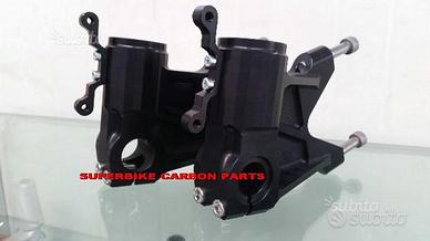 I piedini possono essere realizzati con o senza alleggerimenti, lavorazioni, cave passanti etc.... Possiamo realizzarli su vostre specifiche tecniche od estetiche. Disponibile qualisiasi colore di anodizzazione. Completi di staffe parafango e se necessario attacchi traction control o sistemi elettronici vari.