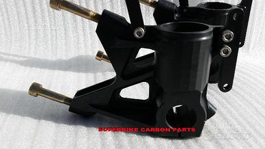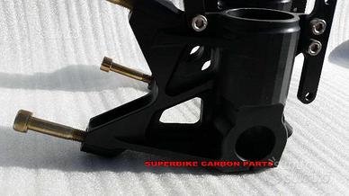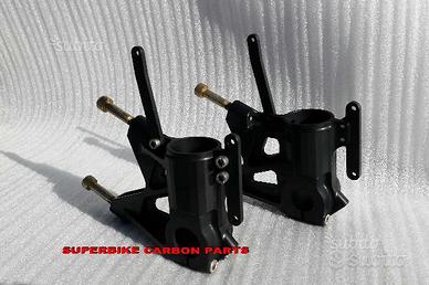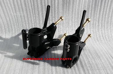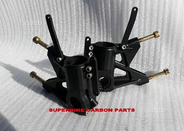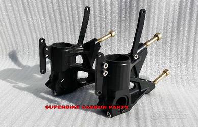I piedini possono essere realizzati con o senza alleggerimenti, lavorazioni, cave passanti etc.... Possiamo realizzarli su vostre specifiche tecniche od estetiche. Disponibile qualisiasi colore di anodizzazione. Completi di staffe parafango e se necessario attacchi traction control o sistemi elettronici vari.