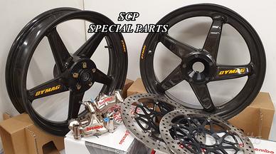 KIT COSTITUITO DA CERCHI DYMAG CARBONIO E IMPANTI FRENANTI BREMBO.