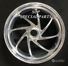 IN ESCLUSIVA MONDIALE CERCHI SUPERBIKE per DUCATI PANIGALE V4 e PANIGALE V2 1199 1299 forgiati in allumino a 8 RAZZE. LA COPPIA DI CERCHI PESA SOLO 6,6 KG UTILIZZABILI SU STRADA E IN PISTA!! PER OTTENERE QUESTO PESO SCONVOLGENTE SONO STATE UTILIZZATE LE TECNICHE PIU MODERNE DI PROGETTAZIONE, PRODUZIONE E LAVORAZIONE. Da notare le particolari lavorazioni di alleggerimento sul mozzo, sulle razze e la lavorazione sul canale interno del cerchio posteriore CON IL TRATTAMENTO ANTISPIN per evitare che il pneumatico posteriore possa ruotare sul cerchio sotto la spinte degli oltre 200cv della panigale! I CERCHI FORGIATI PIU PERFORMANTI MAI PRODOTTI AL MONDO PER PANIGALE. DISPONIBILI ANODIZZATI DI QUALSIASI COLORE SU RICHIESTA. SI MONTANO PLUG AND PLAY SENZA MODIFICHE e si possono mantenere anche i dischi freno originali. Vuoi demolire i tuoi record in pista? Vuoi il top per la tua Panigale? Allora affrettati non perdere l'! Centralizzazione delle masse, riduzione delle masse rotanti e riduzione dell'effetto giroscopico questi i benefici che vi permetteranno staccate molto ritardate, accelerazioni brucianti, mantenimento del punto di corda in ingresso e della linea ideale in percorrenza curva, agilità fulminea nei cambi di direzione, minor affaticamento nella guida sportiva e ovviamente miglioramento del vostro best lap. COME OPTIONAL I CERCHI POSSONO ESSERE FORNITI COMPLETI DI DISCHI SUPERBIKE FULL FLOTTANTI CON PISTA FRENANTE DA 6MM DI SPESSORE CHE POSSONO ESSERE USATI CON PINZE DI SERIE CHE CON PINZE RACING ANCHE A PISTA BASSA.