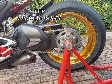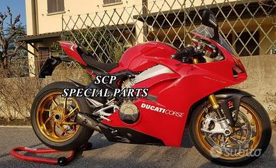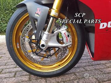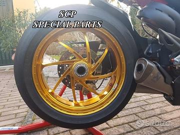 IN ESCLUSIVA MONDIALE CERCHI PVM SUPERBIKE per DUCATI PANIGALE V4 e PANIGALE V2 forgiati in allumino a 8 RAZZE. LA COPPIA DI CERCHI PESA SOLO 6,4 KG PER OTTENERE QUESTO PESO SCONVOLGENTE SONO STATE UTILIZZATE LE TECNICHE PIU MODERNE DI PROGETTAZIONE, PRODUZIONE E LAVORAZIONE. Da notare le particolari lavorazioni di alleggerimento sul mozzo, sulle razze e sul canale del cerchio. I CERCHI FORGIATI PIU PERFORMANTI MAI PRODOTTI AL MONDO PER PANIGALE. DISPONIBILI ANODIZZATI DI QUALSIASI COLORE SU RICHIESTA. SI MONTANO PLUG AND PLAY SENZA MODIFICHE Vuoi demolire i tuoi record in pista? Vuoi il top per la tua Panigale? Allora affrettati non perdere l'! Centralizzazione delle masse, riduzione delle masse rotanti e riduzione dell'effetto giroscopico questi i benefici che vi permetteranno staccate molto ritardate, accelerazioni brucianti, mantenimento del punto di corda in ingresso e della linea ideale in percorrenza curva, agilità fulminea nei cambi di direzione, minor affaticamento nella guida sportiva e ovviamente miglioramento del vostro best lap.