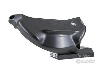 Protezioni Ducati Panigale V4 in alluminio ricavati dal pieno. Le protezioni progettate e prodotte da Spider sono rinforzate con appositi slider nei punti di contatto per garantire una resistenza maggiore nei punti critici per minimizzare il rischio di rottura del carter motore in caso di caduta.