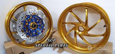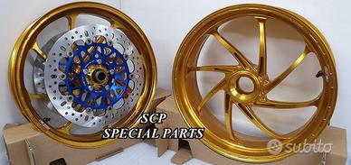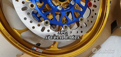 IN ESCLUSIVA MONDIALE CERCHI PVM SUPERBIKE per DUCATI PANIGALE V4 e PANIGALE V2 forgiati in allumino a 8 RAZZE. LA COPPIA DI CERCHI PESA SOLO 6,7KG PER OTTENERE QUESTO PESO SCONVOLGENTE SONO STATE UTILIZZATE LE TECNICHE PIU MODERNE DI PROGETTAZIONE, PRODUZIONE E LAVORAZIONE. Da notare le particolari lavorazioni di alleggerimento sul mozzo, sulle razze e sul canale del cerchio. I CERCHI FORGIATI PIU PERFORMANTI MAI PRODOTTI AL MONDO PER PANIGALE. DISPONIBILI ANODIZZATI DI QUALSIASI COLORE SU RICHIESTA. SI MONTANO PLUG AND PLAY SENZA MODIFICHE e si possono mantenere anche i dischi freno originali. Vuoi demolire i tuoi record in pista? Vuoi il top per la tua Panigale? Allora affrettati non perdere l'! Centralizzazione delle masse, riduzione delle masse rotanti e riduzione dell'effetto giroscopico questi i benefici che vi permetteranno staccate molto ritardate, accelerazioni brucianti, mantenimento del punto di corda in ingresso e della linea ideale in percorrenza curva, agilità fulminea nei cambi di direzione, minor affaticamento nella guida sportiva e ovviamente miglioramento del vostro best lap. COME OPTIONAL I CERCHI POSSONO ESSERE FORNITI COMPLETI DI DISCHI SUPERBIKE FULL FLOTTANTI CON PISTA FRENANTE DA 6MM DI SPESSORE CHE POSSONO ESSERE USATI CON PINZE DI SERIE CHE CON PINZE RACING ANCHE A PISTA BASSA.