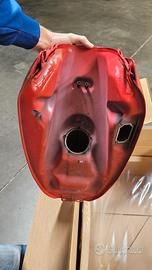 Serbatoio con 10000km in ottime condizioni con un piccolo punto nero sulla verniciatura rossa, visibile in foto.