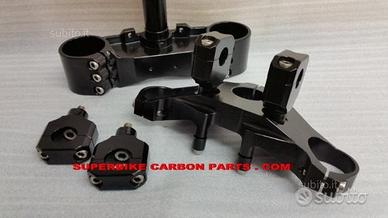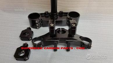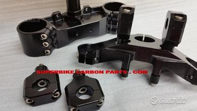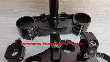 DUCATI SPORT CLASSIC GT 1000: PRODUZIONE PIASTRE DI STERZO SPECIALI RICAVATE DAL PIENO CON MACCHINARI A CONTROLLO NEMERICO. Il kit piastre è costituito da piastra di sterzo inferiore con asse canotto e piastra di sterzo superiore con raiser oppure con semimanubri sportivi per sport classic e paul smart. Per il montaggio si utilizzano boccole e cuscinetti originali. Cave di alleggerimento passanti sulla piastra inferiore e superiore a richiesta. Le piastre sono disponibili anche per forcelle ohlins o altra marca con kit di montaggio dedicato per realizzazioni special. Un prodotto rivoluzionario per efficacia, risorse tecniche e costo contenuto. Possibilità di scegliere qualsiasi colore per l'anodizzazione. Le piastre di sterzo sono progettate appositamente per migliorare il feeling con l'avantreno eliminando il chattering rendendo la moto piu' stabile in inserimento curva e percorrenza. La lega speciale utilizzata (testata in pista nei principali campionati internazionali e non come fanno quasi tutti gli altri produttori senza know how sui campi gara!!) E' studiata appositamente per assorbire le sollecitazioni e permettere alle sospensioni di lavorare molto meglio. Off set standard oppure speciale regolabile a richiesta. Per quanto concerne il preventivo personalizzato la invitiamo a contattare il nostro ufficio vendite al 3488506178 (orario ufficio 8-12 12.30-18 dal lunedì al sabato - festivi esclusi) oppure può lasciare il suo recapito telefonico provvederemo a ricontattarla per farle il nostro miglior preventivo .