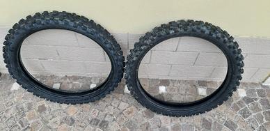 Vendo 2 pneumatici Dunlop anteriori modello geomax mx 33 f misura 80/100/21 per moto da cross o enduro. Le gomme sono in ottime condizioni una al 90% e una al 70% e le dot sono 2021 e 2022. Vendo la coppia a 50 euro. Vendibili anche separatamente.