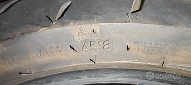 La posteriore 180/55 è di fine 2018 (vedi foto 5) e ha il 60-70% del battistrada residuo, l'anteriore 120/70 è di inizio 2021 (vedi foto 3) ed ha oltre il 90% di battistrada residuo. Prezzo delle gomme nuove oltre 250 euro.
