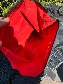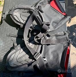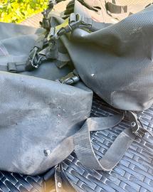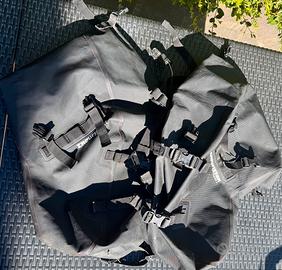Borse sella Enduristan Blizzard taglia L Volume 2 sacchetti da 12 litri, Dimensioni 36L x 18W x 24H (cm) per sacco Condizioni buone Piccoli segni usura come da foto Impermeabilità al 100% Adatte ad ogni avventura Costruite per l’uso in off road che su strada e piste battute, le borse da sella Blizzard hanno una forma innovativa e funzionale che non ostacola i tuoi movimenti sulla moto durante la guida. Se ti allunghi indietro durante discese più ripide, le borse non interferiranno con le tue gambe e nel contempo non si impiglieranno nei cespugli perché non hanno fibbie o lacci sul lato esterno. Come tutto il nostro equipaggiamento, sono costruite con il tessuto a 3 strati Enduristan, estremamente robusto e reistente allo strappo. Tutte le cuciture sono doppie e le fibbie delle cinghie sono testate per resistere a una trazione di 225kg. Non servono portapacchi Francamente non ha senso acquistare un costoso scarico in titanio che pesa qualche chilo in meno dell’originale e poi dover montare sulla moto pesanti telai portaborse in acciaio. Le borse laterali Blizzard non richiedono un portapacchi occorre solo assicurarsi che gli oggetti più pesanti siano riposti all’interno della borsa laterale posizionata dal lato libero dal terminale di scarico (nel caso la tua moto abbia solo uno scarico) e, se necessario, installare la protezione per il calore Inferno Heat Shield. – 100% resistenti ad acqua, fango, neve e polvere – Non sono necessari telai laterali – Si adatta a quasi tutte le enduro e le adventure-bike – Rivestimento interno rosso per un miglior contrasto – 2 file di asole porta-materiali per borsa per un facile fissaggio degli accessori – Maniglie ergonomiche con impugnatura morbida