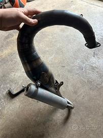 vendo marmitta quattrini m3xc in ottime condizioni, perfetta per motori da competizione smallframe da 130 cc 135 e oltre .. adatta per vespa 50 special, et3 e simili.. lieve bozza sulla parte superiore come in foto, ma non compromette assolutamente la resa e da montata non si nota.. lo scarico monta su m1l pinasco, polini, falc, parmaki, egig, malossi ecc. dopo il contatto eventualmente prezzo leggermente trattabile