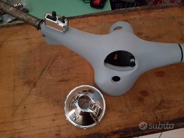 Vendo manubrio completo originale Piaggio et3 primavera con faro Siem in metallo e vetro (no plastica) cornicetta cromata leve e viti Olimpia cavo contachilometri RMS interruttore luci Piaggio manopole marchiate Piaggio contachilometri di buona qualità ma non originale. Tutti i pezzi sono NUOVI e imbustati tranne l'interruttore luci che vedete montato il prezzo trattabile dopo visione, non accetto offerte, le spedizioni sono a parte.